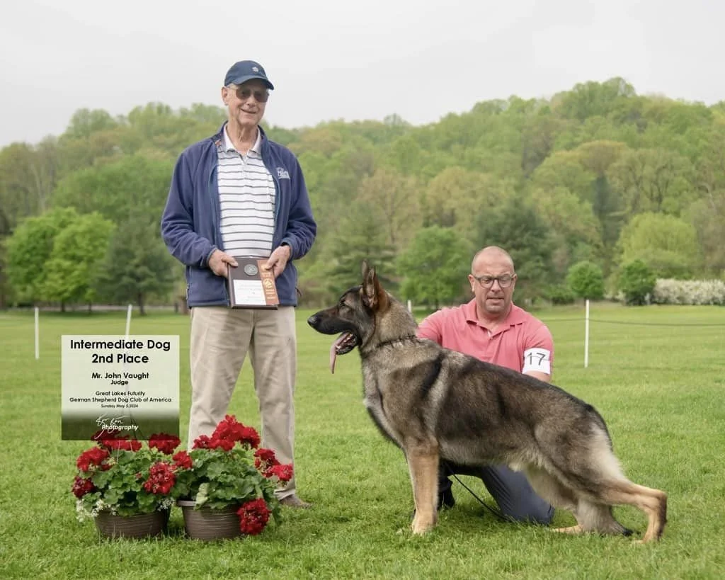 Parents of our litters are titled in conformation or obedience, or actively working on their titles. All parents are OFA/OVC certified or prelimed, and our dogs are OFA DM tested or cleared by parentage as well. Feel free to check out some of our previous litters in our Gallery.